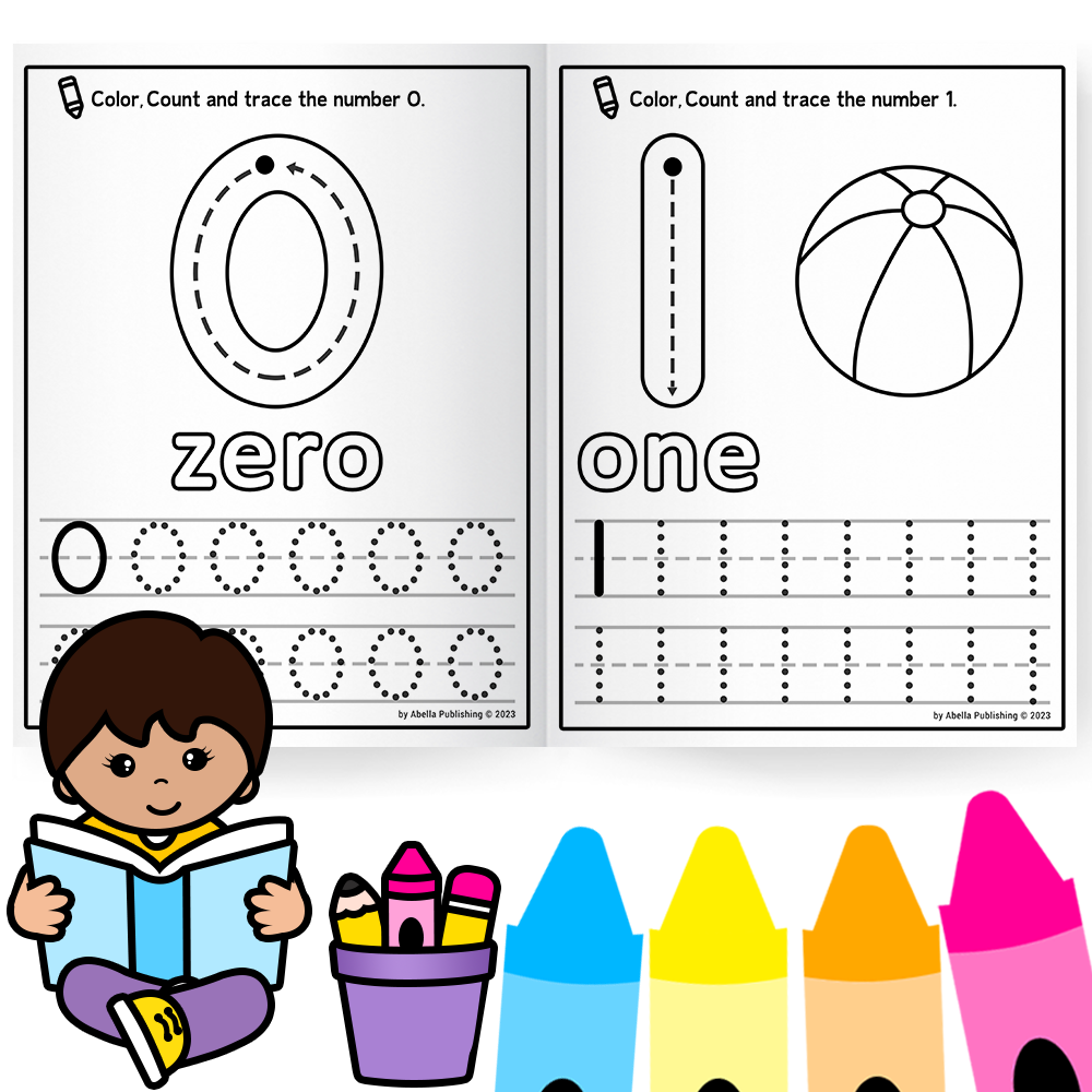 β€οΈ This Number practice book progressively builds your kids skills starting from number recognition, number writing, number sequence to prepare them for pre-school and kindergarten. With 11 pages of tracing activities supported by pre-drawn lines, kids build their confidence to write the numbers on their own with correct pen control techniques.